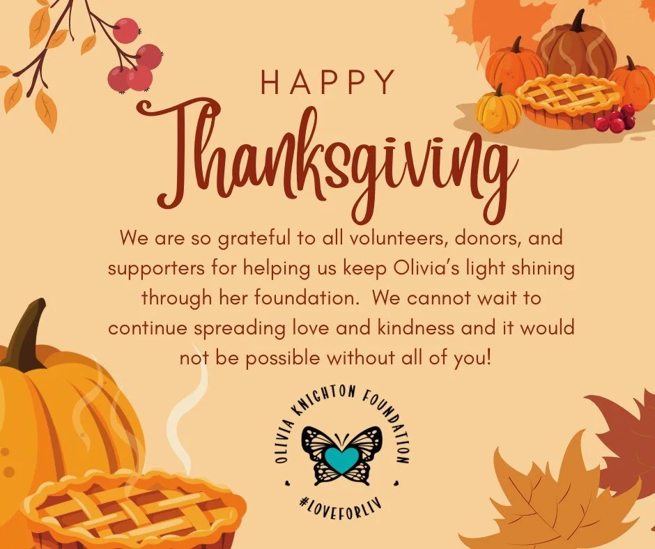 The Olivia Knighton Foundation was established on what would have been Olivia's 12th birthday on November 3rd, 2023. The Foundation's mission is to honor Olivia’s short but beautiful life by spreading her light, love, passion, and kindness. It is our goal to enable children to follow their dreams and make the world a better place by providing scholarships and grants, spreading acts of kindness, and supporting the causes that were most important to Olivia.